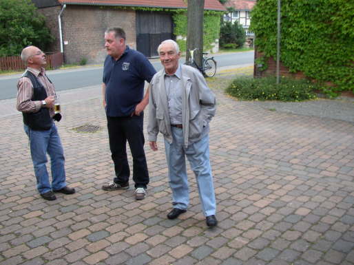 Unser Ortbrandmeister a.D., Heinrich Steinmeyer (rechts, er ist auch gleichzeitig der Leiter der Altersabteilung in Rohrsen), möchte sich das Fahrzeug genauer ansehen.