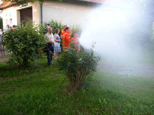 Unser stellvertretender Ortsbrandmeister, Christian Kruse, führt die provisorische, "selbstgebaute Schnellangriffseinrichtung" vor. Das war natürlich ein Höllenspaß für die Kinder. Anschließen durften die Kinder dann auch noch mit dem TSF-W mitfahren. Das war natürlich sehr aufregend.