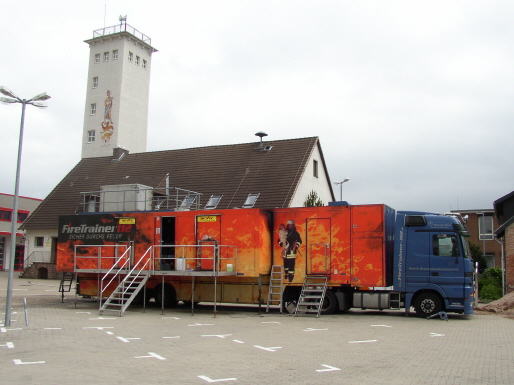 An der Feuerwehr Technischen Zentrale (FTZ) steht die mobile Brandsimulationsanlage für 2 Tage. Die Kosten sind hoch.Die Ortswehren müssen die Kosten selbst tragen, obwohl die Gemeinden für die Ausbildung der Feuerwehren zuständig sind.