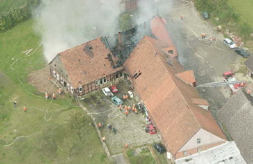Eine defekte Heizung ist vermutlich die Brandursache.Die Feuerwehr Rohrsen (Vordergrund) kämpft mehrere Stunden gegen die Flammen.