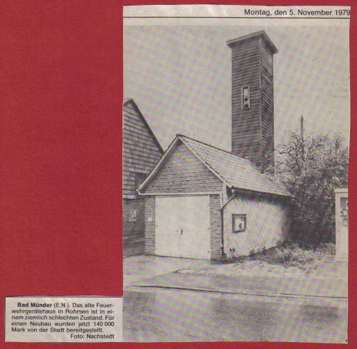 Das erste Feuerwehrhaus mit Schlauchturm wurde 1934 ausschließlich für Gerätschaften gebaut. 1952 wurde das Haus erweitert, damit das erste Löschfahrzeug darin Platz fand.