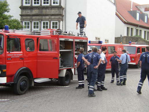 Als wir auf dem Steinhof ankamen, waren fast alle anderen Feuerwehren, die auch ein anderes Fahrzeug erhalten sollen, bereits da."Ringtausch" war angesagt. "Unser" TSF steht ganz hinten rechts ...